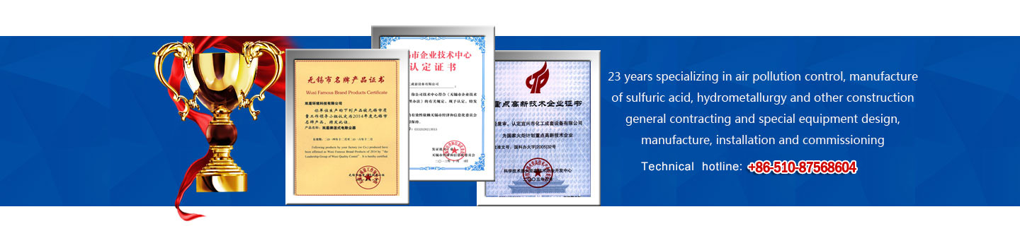 Shuangdun Environmental Technology Co., Ltd. (original Yiixng Complete Chemical Equipment Co., Ltd.) was restructured in 1992. It is general contractor enterprise of environmental device and complete chemical device appointed by the original Ministry of Chemical Industry. At present, the company mainly engages in engineering project contracting (EPC) of clean emission, flue gas desulfurization, sulfuric acid from flue gas, smelting by wet method, pressure vessel manufacturing, sewage treatment, and in designing, manufacturing, installing and debugging special equipment. Our main products including honeycombed electric mist precipitator for conductive FRP with proprietary intellectual property rights, new-model fourth generation SDD-CF wet electrical dust precipitator, complete sulfuric acid production device from flue gas (efficient washer, isothermal pre-reforming... More>>>